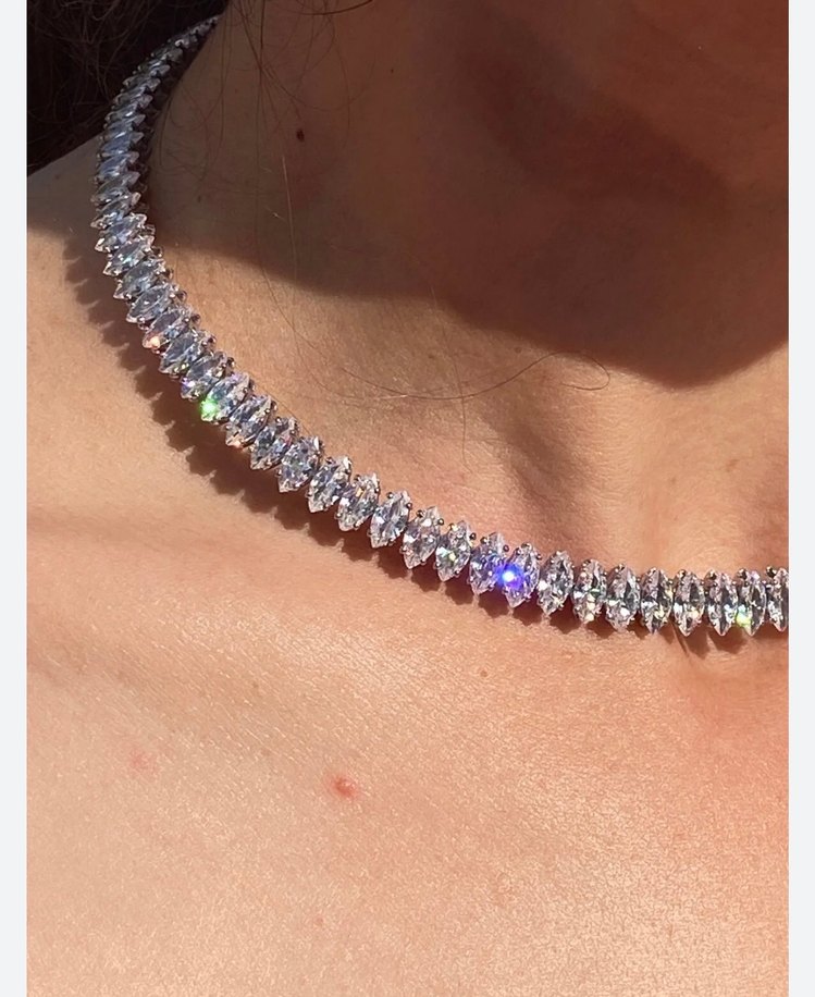 Işıltılı Çok Renkli Kadın kolye tam tur kolye baget kolye