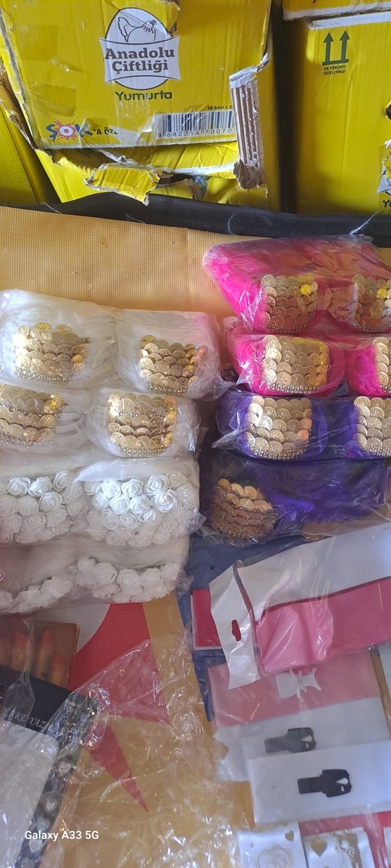 Işıltılı altın pullarla süslenmiş, hafif renkli . kına nedime tacı. 2 pkt toplam 20 adet karışık renkli kargolanacaktır.