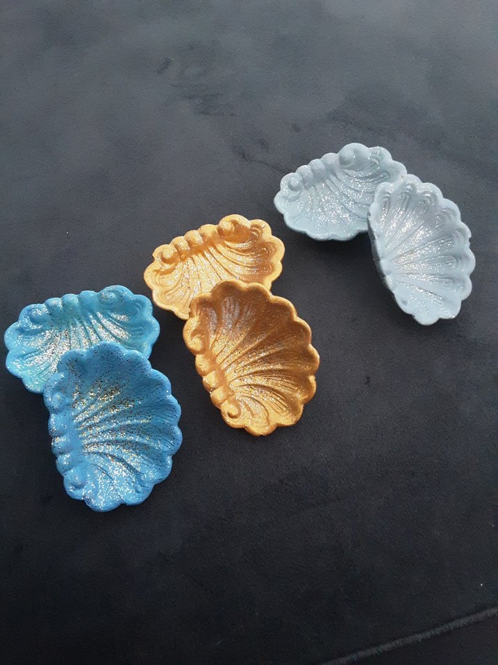 Işıltılı mavi, gri ve altın renklerinde deniz kabuğu şeklinde lokumluk