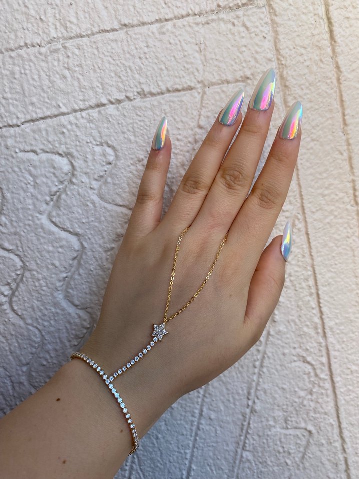 Altın renkli, ışıltılı detaylara ve yılan desenine sahip bohem tarzda el zinciri, günlük kullanım için uygun. ✨