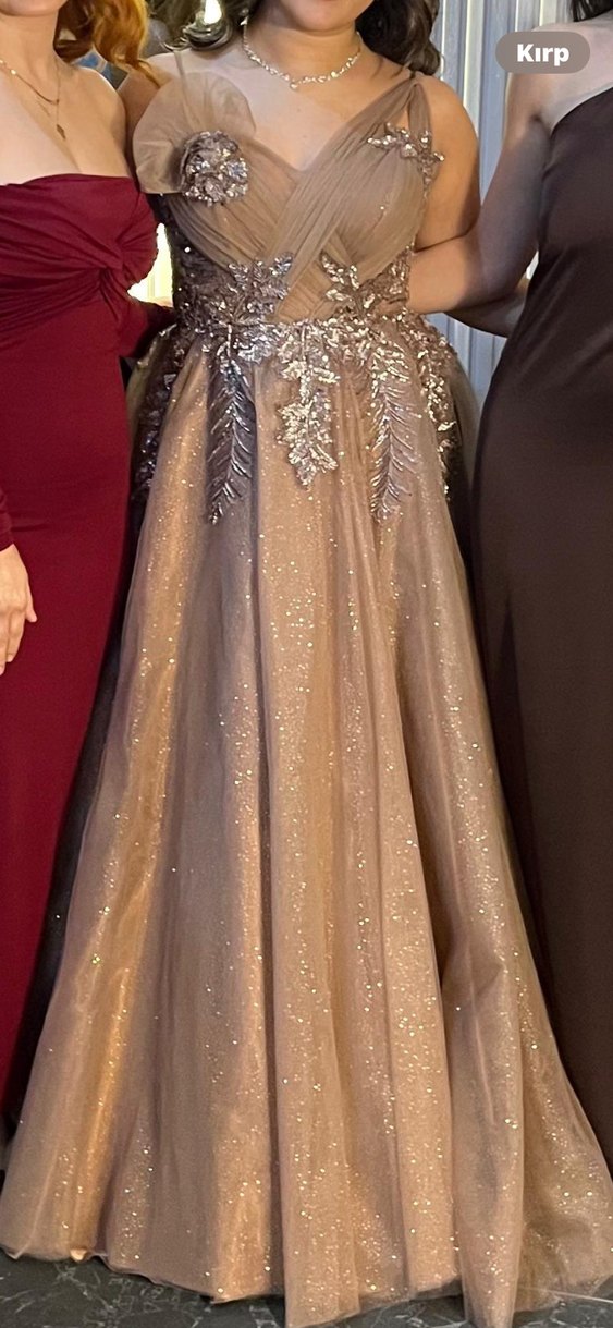 Işıltılı gül kurusu şampanya pembesi nişan elbisesi