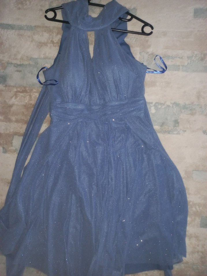 Mavi renkli, drapeli tasarıma sahip uzun abiye elbise. İnce askılı, halter yaka ve vücuda oturan kesimiyle şık bir görünüm sunar. Kumaşı hafif parlaklık taşır. ✨