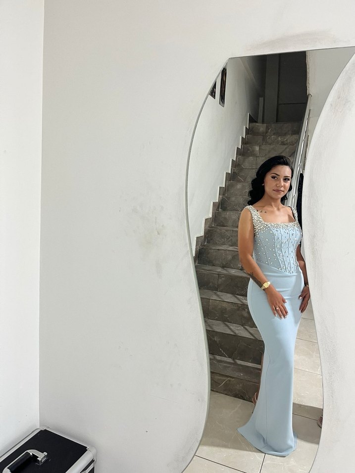 Işıltılı Mavi Uzun Abiye Elbise