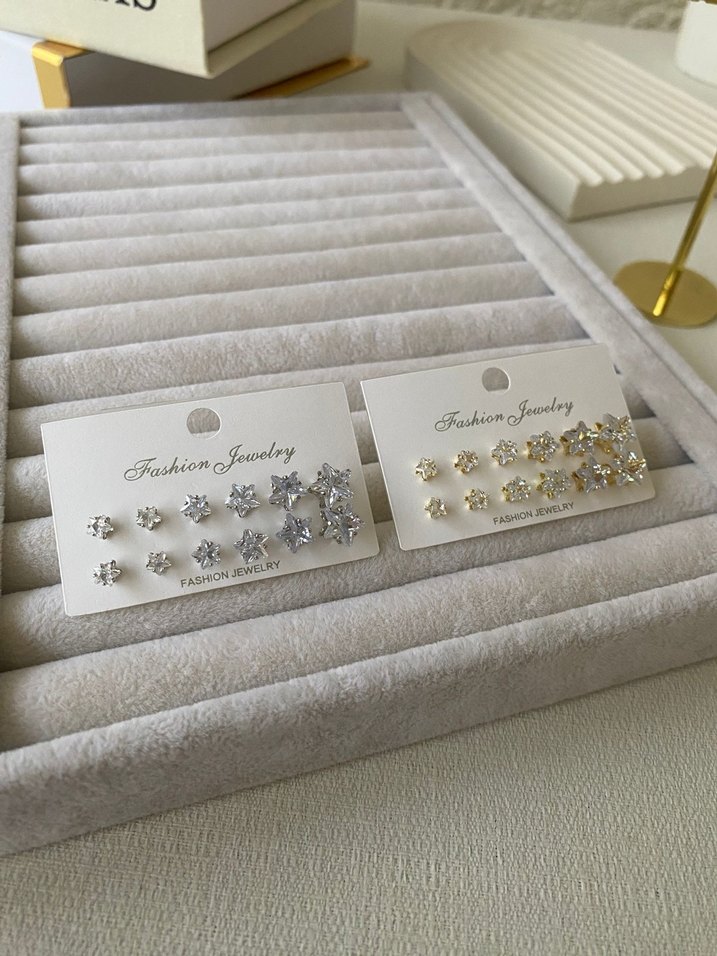 Modern klasik tarzda, beyaz işlemeli ve ışıltılı mini küpe seti. Günlük kullanıma uygun, zarif ve göz alıcı tasarım. ✨
