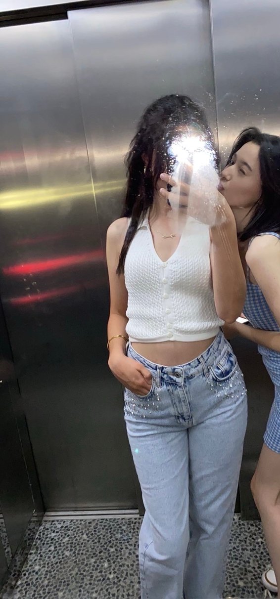 Düğmeli, pastel batik desenli beyaz denim pantolon. Orta boy, günlük ve parti için uygun, dar kesim. ✨