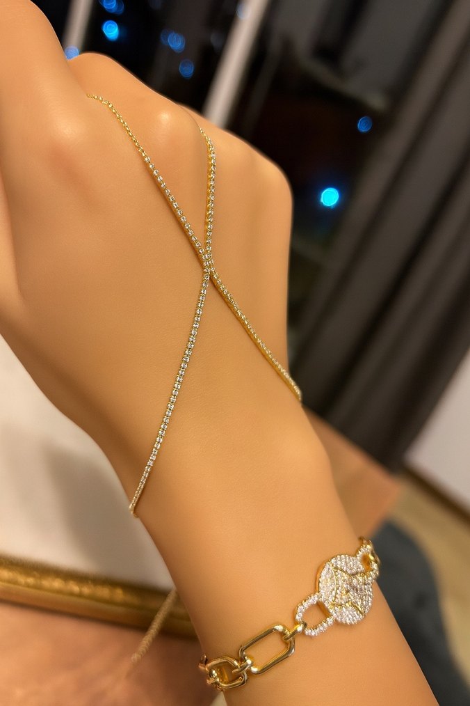 Tam taş işlemeli, çok zarif ve modern bir gold şahmeran. Elde ince ve şık durur, ışığı mükemmel yansıtır. Hiç kullanılmadı, tertemiz. Ayarlanabilir ölçüdür. Gerçek fotoğraflar – hızlı gönderim. ✨ #şahmeran #taşlışahmeran #goldaksesuar #zariftakı #ışıltılımodel #takı #jokael