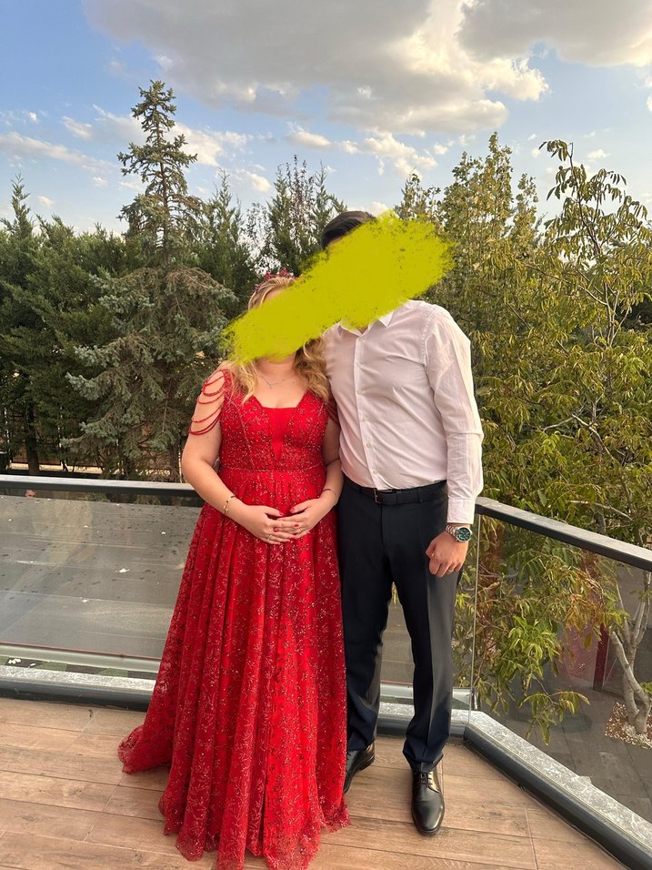 10 ay önce kına gecemde sadece 1 kez giydim. Omzundaki zarif detaylar çok şık duruyor. Elbisedeki taş işlemeleri özellikle ışıkta çok güzel parlıyor. Dekolte kısmındaki görüntüye ek tül yaptırdığım için yarı transparan şeklinde. Etkinlik boyunca tüm dikkati üzerinize çekebileceğiniz şık bir elbise. 46-48 beden için uygun. Arkadaki ip detayıyla 44 beden için de uygun olur. Benim boyum 1.65. Topuklu giydim. Görseldeki gibi durdu. Kesim yapmaya da müsait bir elbise. Özenle saklandı. Tacını hediye edeceğim. #kına #kınagecesi #kınaelbisesi #bindallı #kaftan #hinttarzı #parlakkırmızı #iritaşlı #özelgün #çeyiz