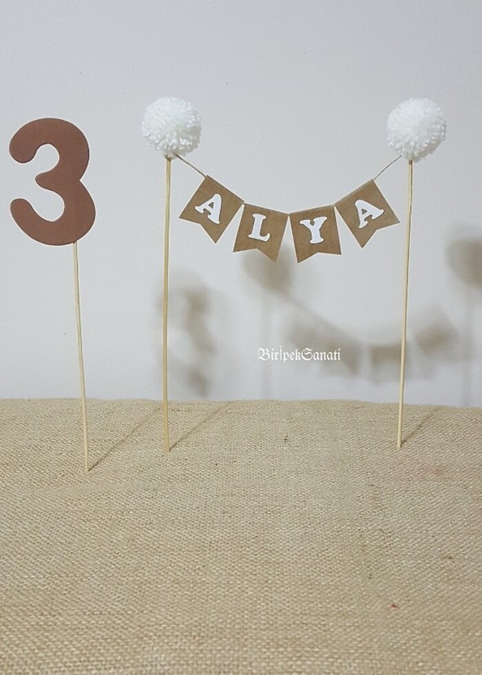 Isimlik pasta süsü istediğiniz renk ve modelde hazırlanır ponpon, yazi renklerinde değişiklik yapabiliriz Fiyat temsilidir Bilgi için mesajdan ulaşabilirsiniz #pastasusu #isimlikPastaSusu #pastabayragi #pastaisimligi