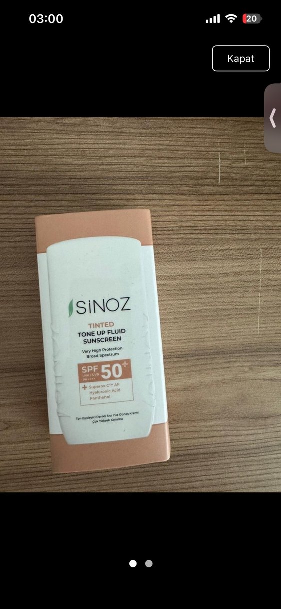 ISiNOZ tonlu güneş koruyucu sıvı, SPF 50 ile çok yüksek koruma sağlar. Hyaluronik asit ve panthenol içerir.