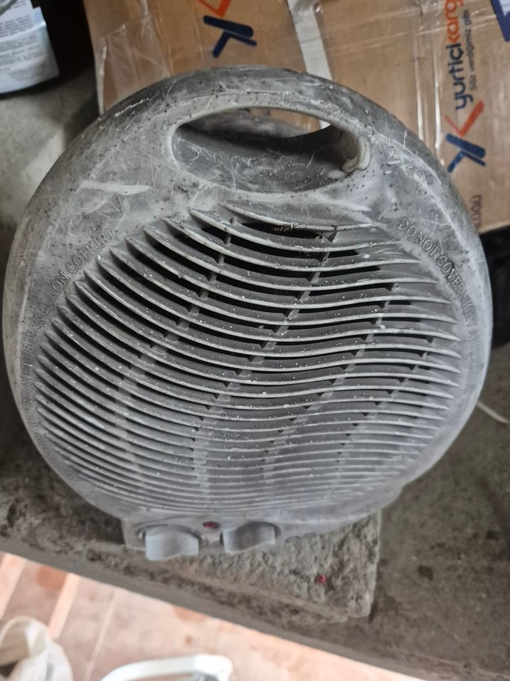 Gri renkte, kullanımı kolay kontrol düğmelerine ve taşıma için entegre elde tutamağa sahip portatif ısıtıcı. Isıtma sağlar.