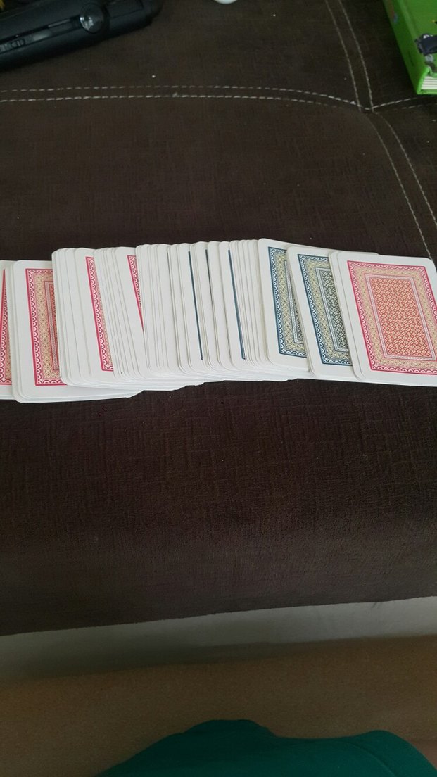 Çeşitli kart oyunları için uygun, standart sırt desenlerine sahip çok renkli oyun kartları seti.iki deste. yeni.