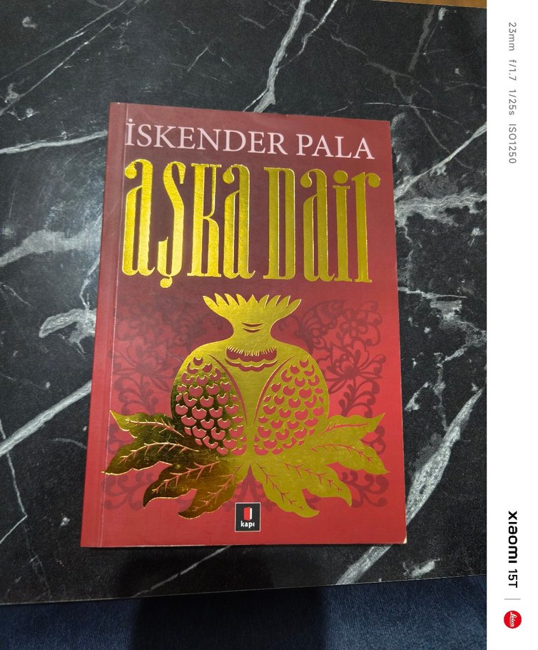 İskender Pala'nın 'Aşka Dair' romanı, aşkı simgeleyen nar ve yapraklarla süslü kapak tasarımına sahiptir. ( Normal Boy)