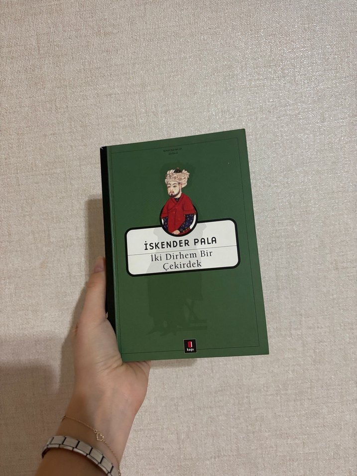 İskender Pala'nın 'İki Dirhem Bir Çekirdek' adlı şiir kitabı, yeşil kapak ve çizimli karakterle sunuluyor.