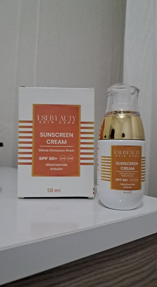 ISL Beauty SPF 50+ güneş koruyucu krem, UVA ve UVB ışınlarına karşı yüksek koruma sağlar. Niacinamide ve arbutin içerir. 50ml şişede sunulur. ☀️