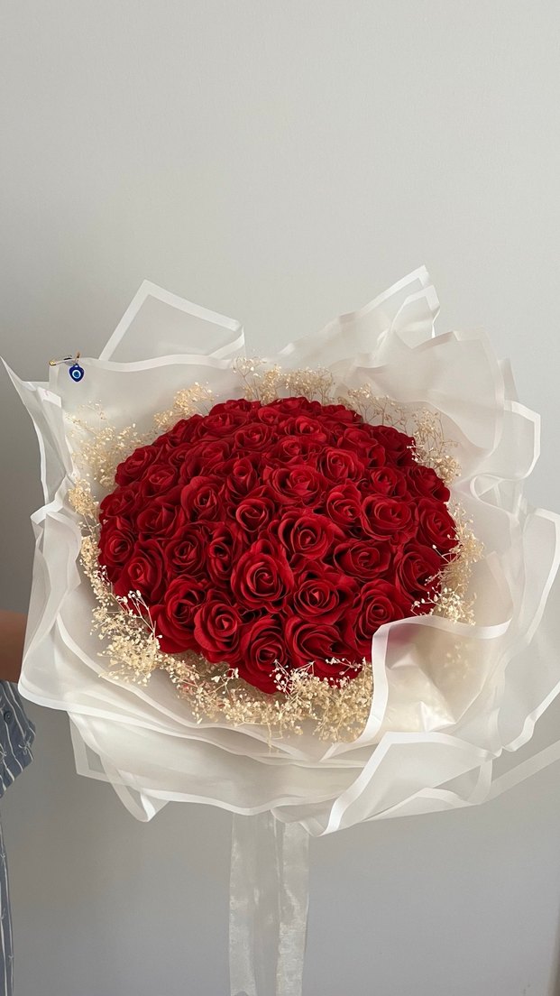 Islak Dokulu 41 Adet Kırmızı Gül İsteme Buketi