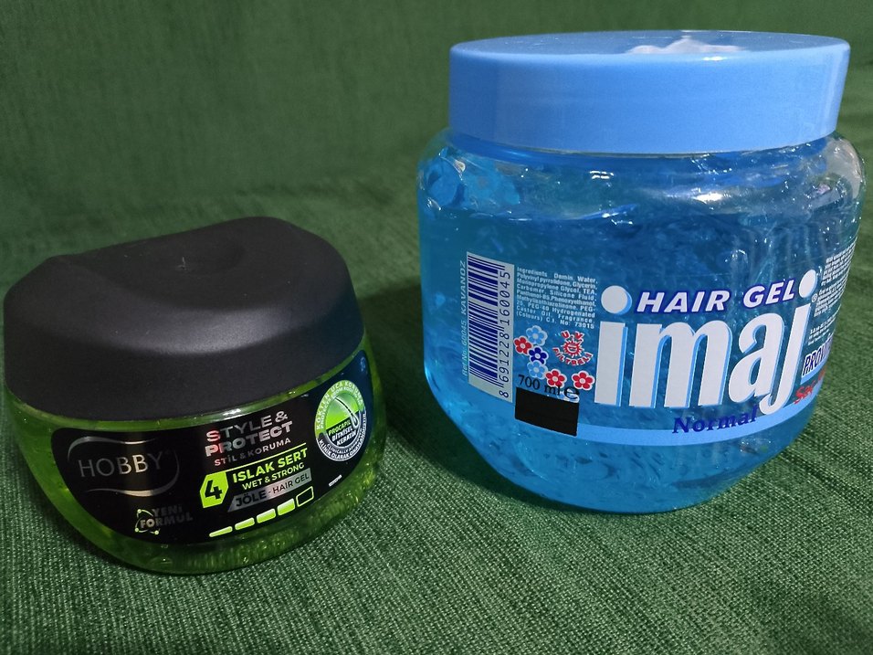 2 adet Islak ve sert tutuş sağlayan erkek saç jeli,İmaj 700ml, Hobby 250 ml . hiç kullanılmamış
