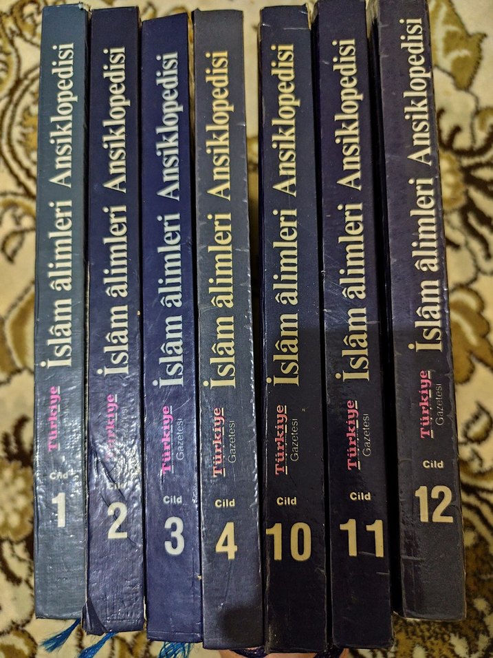 İslâm Âlimleri Ansiklopedisi'nin 1, 2, 3, 4, 10, 11 ve 12. ciltlerini içeren Türkçe ansiklopedi seti.