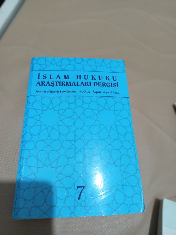 İslam Hukuku Araştırmaları Dergisi'nin 7. sayısı, İslami hukuk çalışmaları üzerine odaklanmaktadır. Mavi kapaklı ve desenlidir.