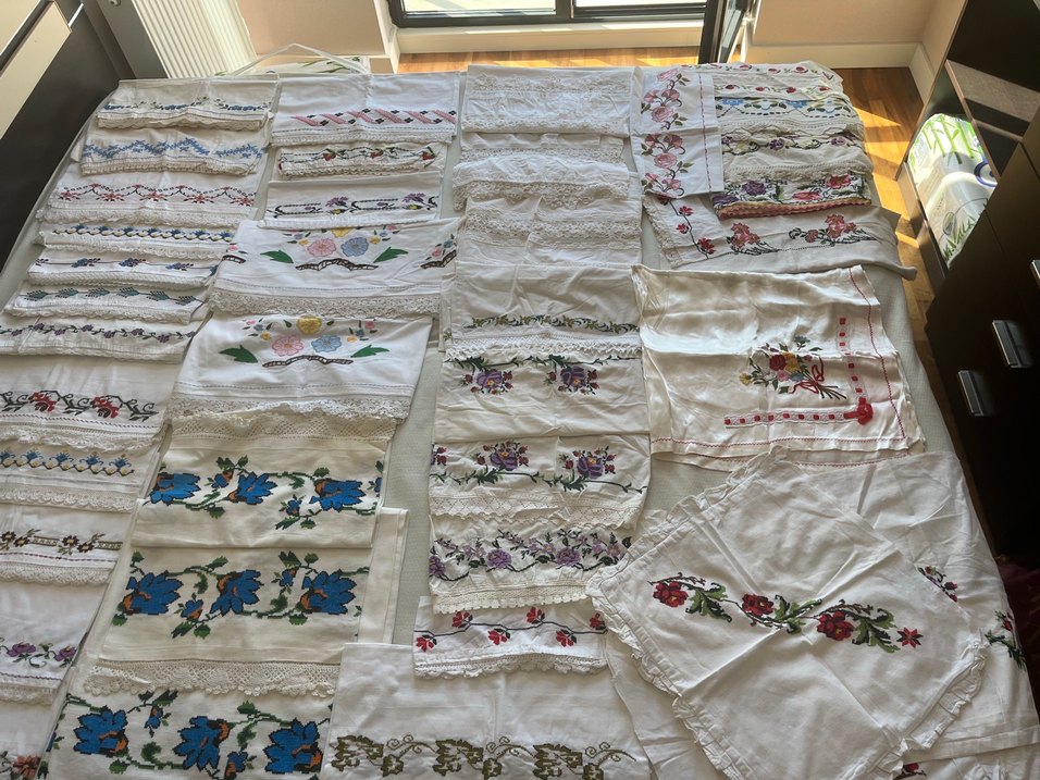 Ustalıkla işlenmiş işlemeler… Hiç kullanılmamış, kaliteli kumaşlar üzerine işlenmiştir. #işleme #dantel #çeyiz
