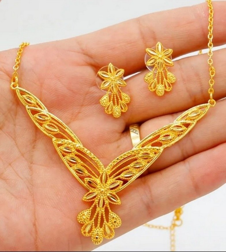İşlemeli Altın Renkli Kadın Takı Seti