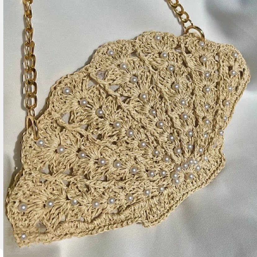 İşlemeli Bej istiridye Örgü Kadın Çanta