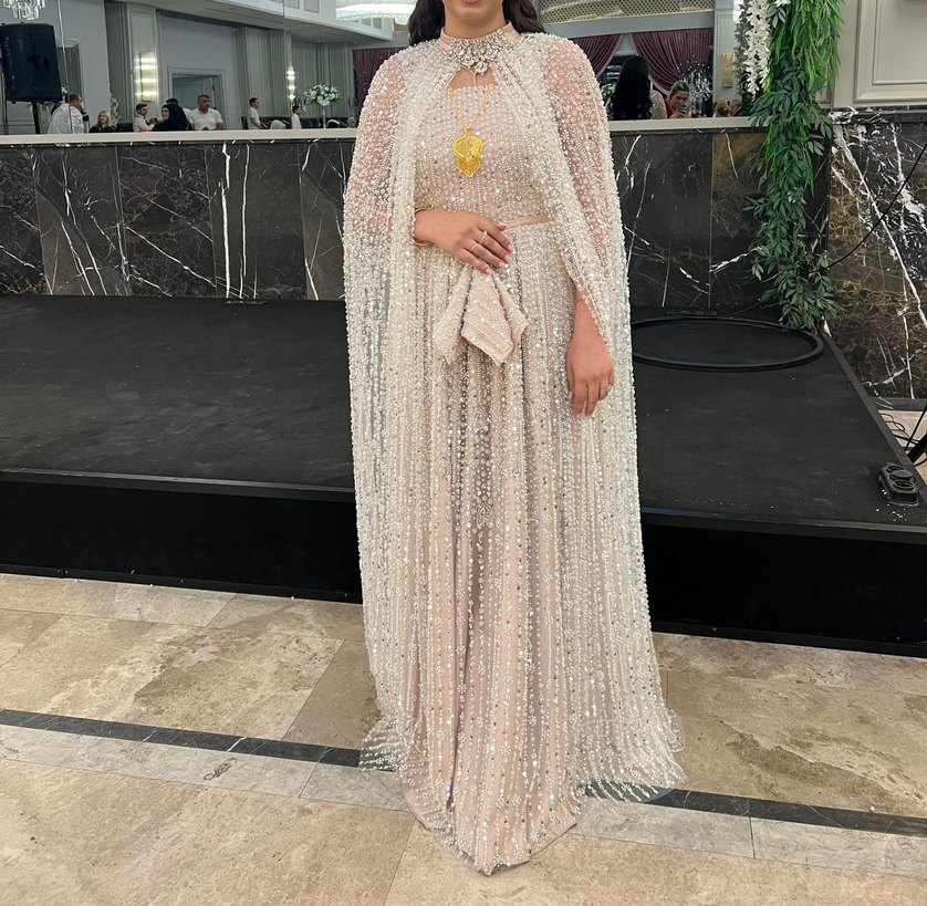 İşlemeli Bej Uzun Kollu Bohem Kadın Abiye 38/40 beden uygundur