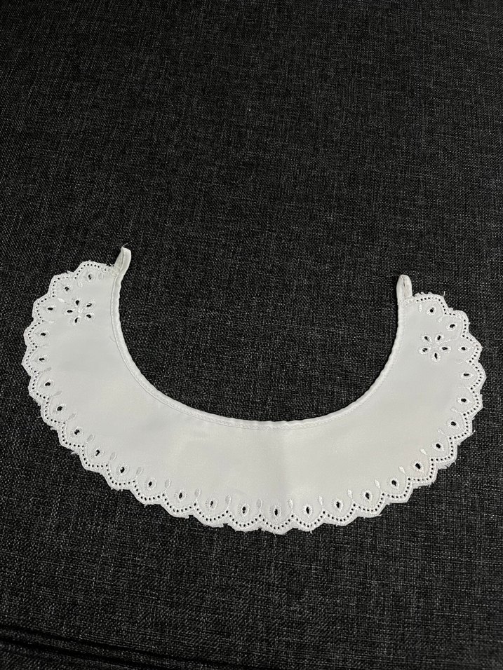 İşlemeli ve fırfırlı kenarlarıyla beyaz bebek önlüğü, yumuşak ve şık bir tasarıma sahiptir.