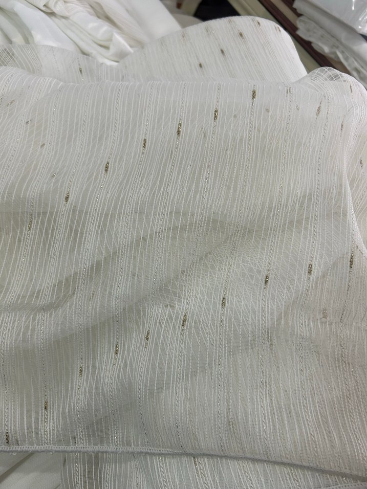 İşlemeli, parlak detaylara sahip beyaz bohem tarzda perde. Kumaşta ince dokulu desen ve hafif ışıltılar bulunur. Dikiş fiyatıyla birlikte peteküstü metre 150 lira Güney Çeyiz Bağcılar