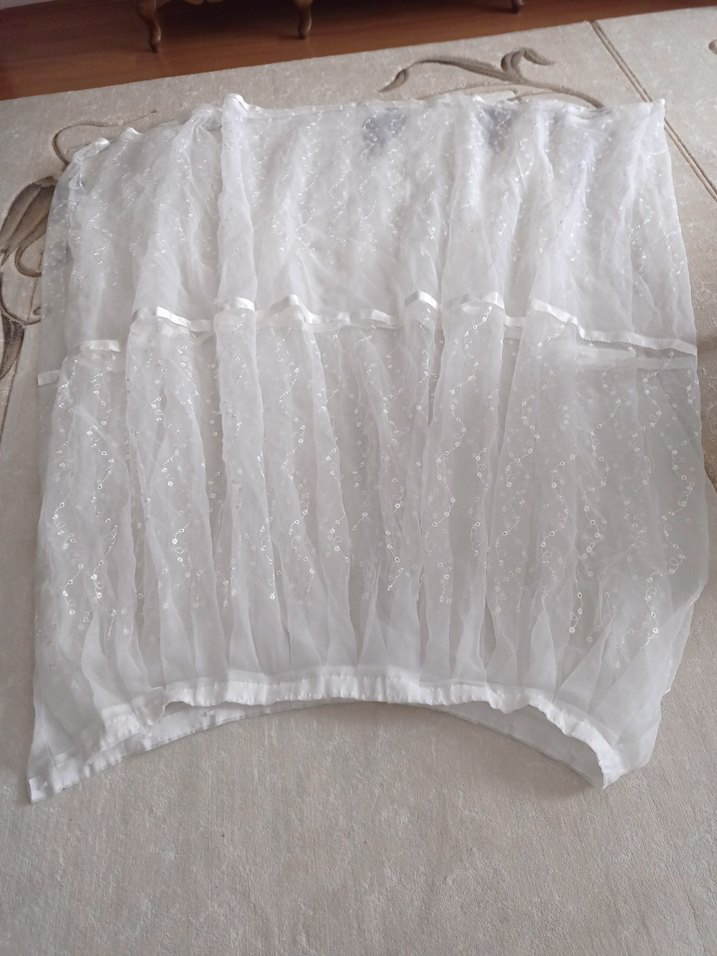 İşlemeli detaylara sahip, hafif beyaz bohem tarzda şeffaf perde cibinlik az kullanıldı beşik üzerine korniş yerlerini kestik biz kurdele ile bağlamıştık bilginize başka bir sıkıntısı yok.