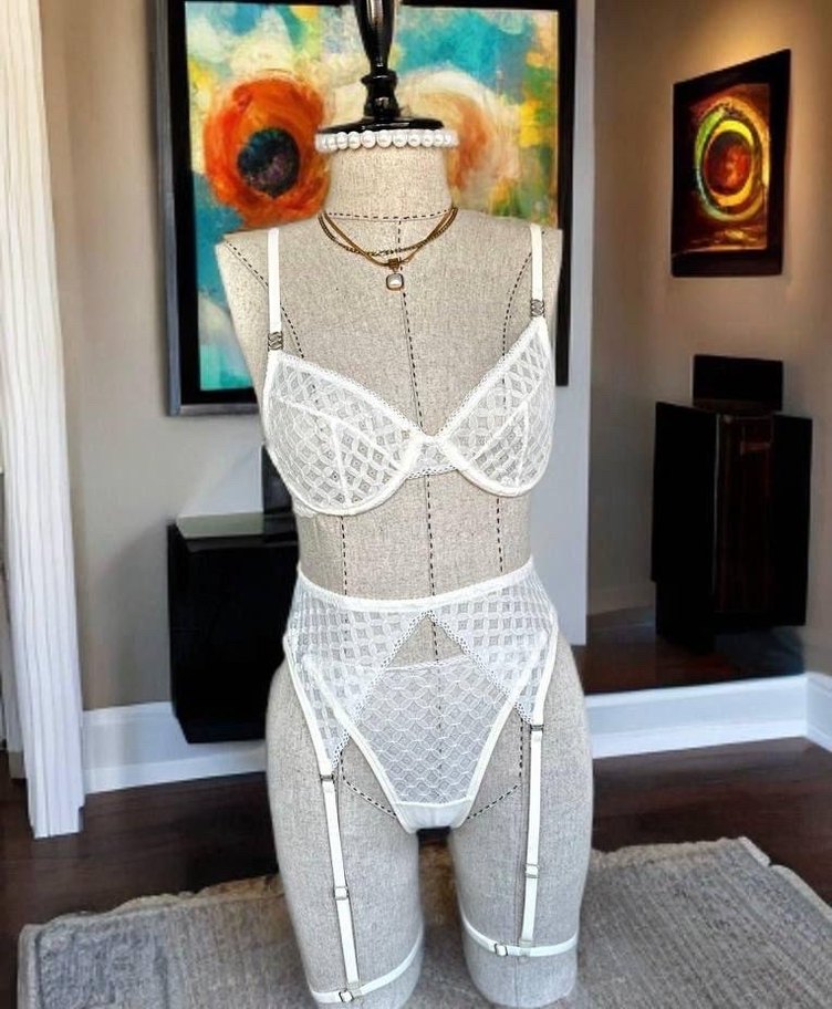 İşlemeli detaylara sahip beyaz bohem sütyen takımı, midi uzunlukta ve Paris tarzında hafif bir renge sahip. ✨