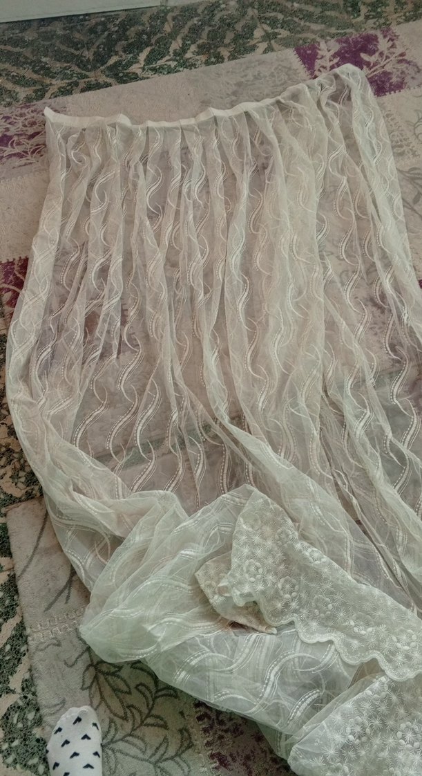 İşlemeli dalgalı desenlere sahip, hafif ve şeffaf kumaştan yapılmış beyaz bohem tül perde. ürün özel dikim sık fileli dır birilant perdedir az kullanıldı ihtiyacım olmadıgı için satıyorum en 107 cm boy 259 cm
