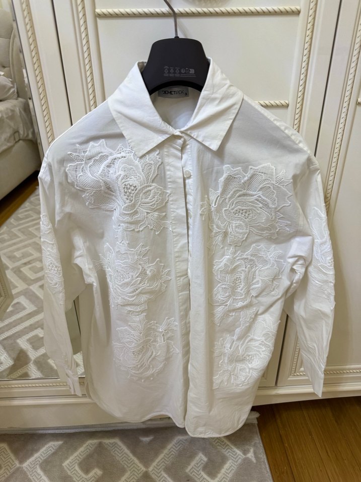 İşlemeli Beyaz Gömlek 3 beden