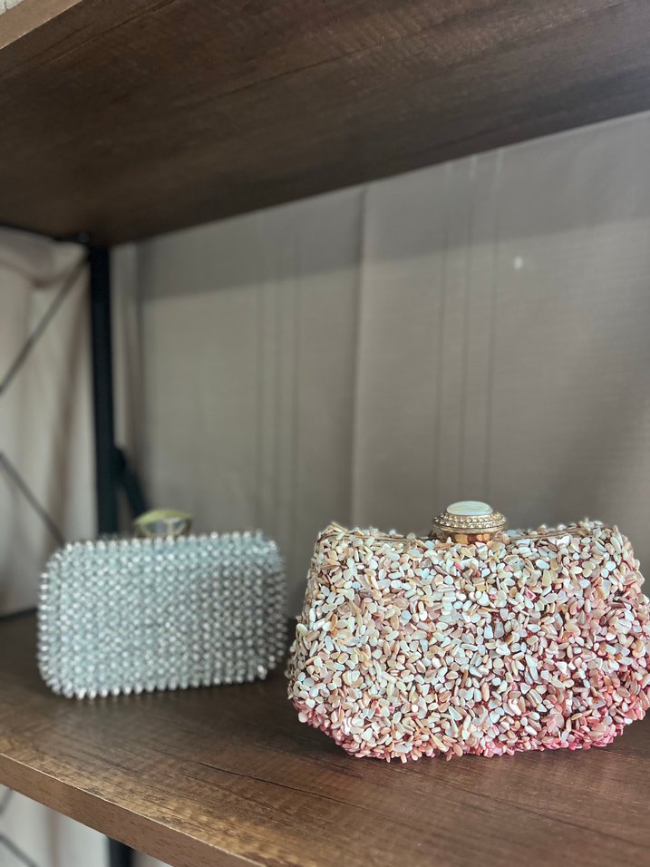 İşlemeli Beyaz Kadın Abiye Çanta - açıkpembe öndeki)