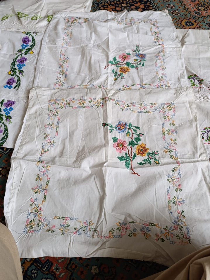 İşlemeli Beyaz kanaviçe yastık kılıfı çeyizlik