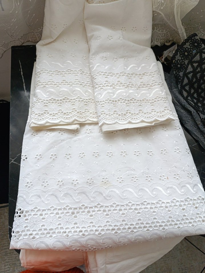 İşlemeli desenlere sahip beyaz nevresim takımı göbeklı nevresım ve etekli çarşaf ıkı adet yastık