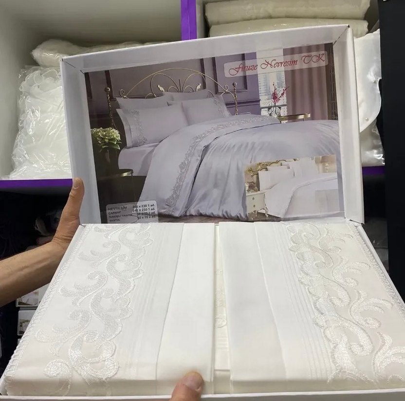 İşlemeli beyaz nevresim takımı, yatak takımlarınıza zarif bir dokunuş katıyor. Açık renk, temiz ve ferah bir görünüm sağlar. ️