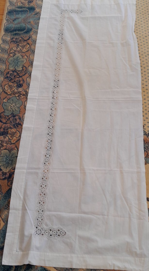 Kenarlarında zarif işlemeler bulunan beyaz nevresim ve çarşaf seti. Hafif renk ve detaylar yatak odasına şıklık katar. ️örtü eskilerden 1 metreden fazladır