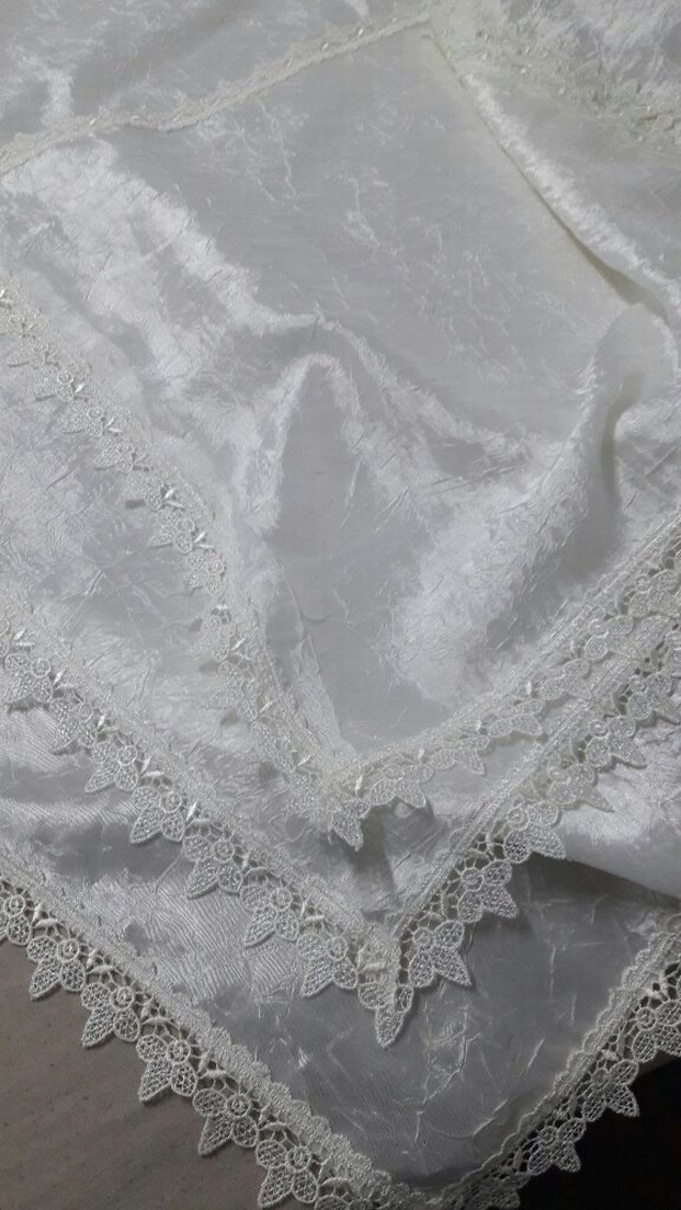 Parlak beyaz renkte, kenarları ince işlemeli klasik tarzda masa örtüsüdür. ️3 parcadir