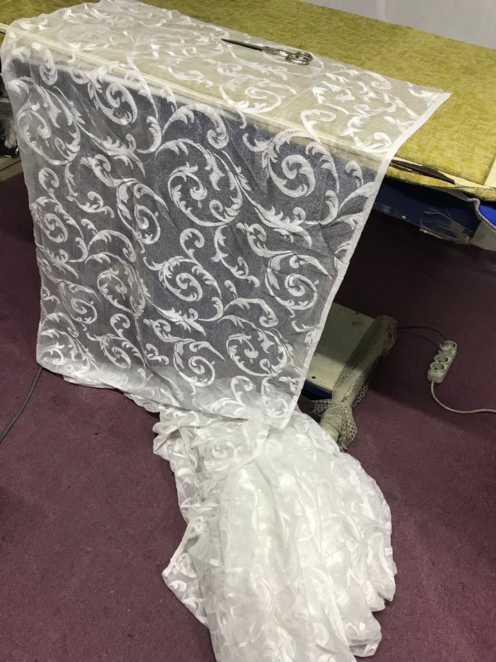 İşlemeli Beyaz Parlak Tül Perde