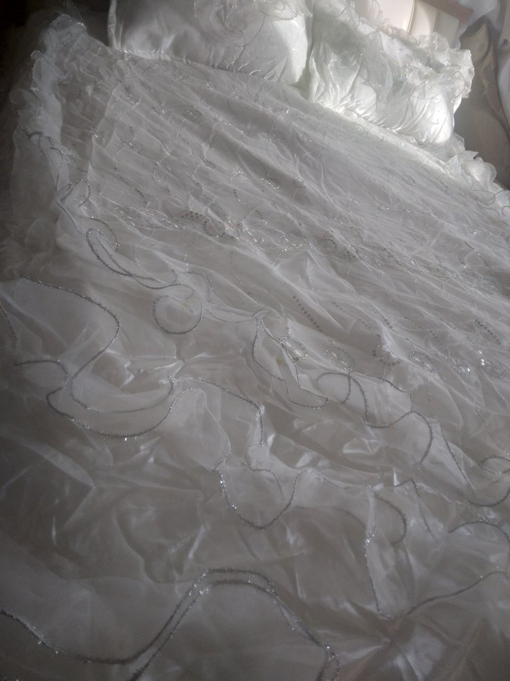Parlak işlemeli desenlere sahip beyaz yatak örtüsü, yatak odanıza şıklık katıyor. Yumuşak ve dekoratif kumaş rahatlık sağlar. ️