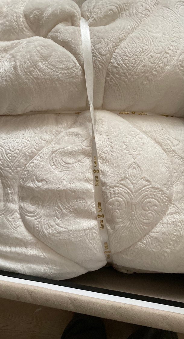 İşlemeli desene ve parlak görünüme sahip beyaz yatak örtüsüdür. ️nevresım yastık yorgan