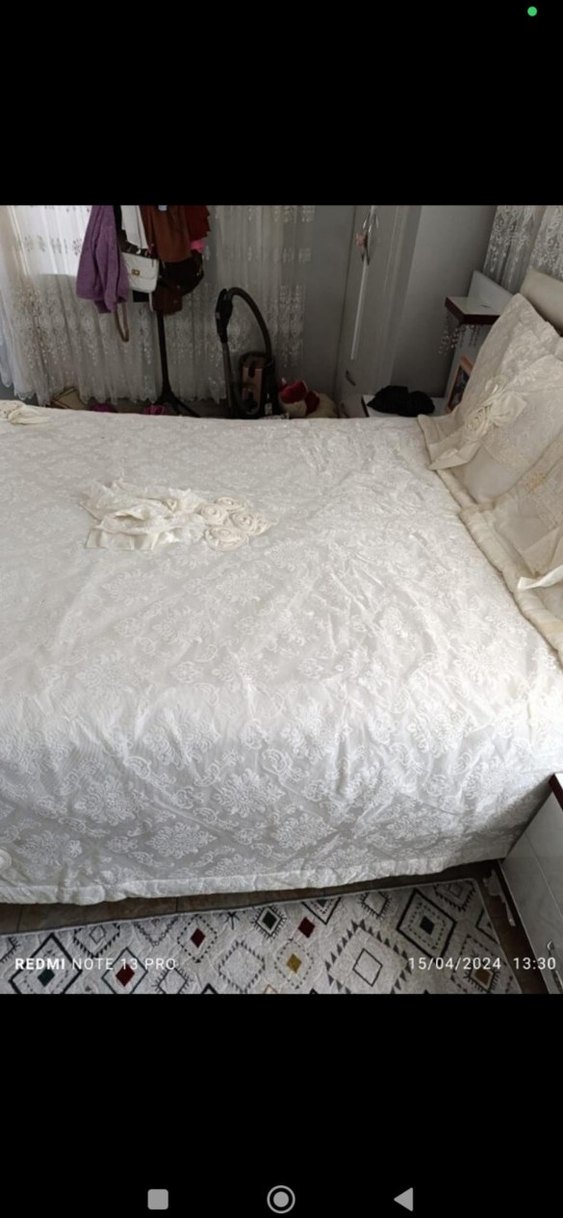 Parlak kumaş ve işlemeli desenlere sahip beyaz yatak örtüsü, yatak odasına zarif bir dokunuş katıyor. Yumuşak ve şık tasarım rahatlık sağlıyor. ️