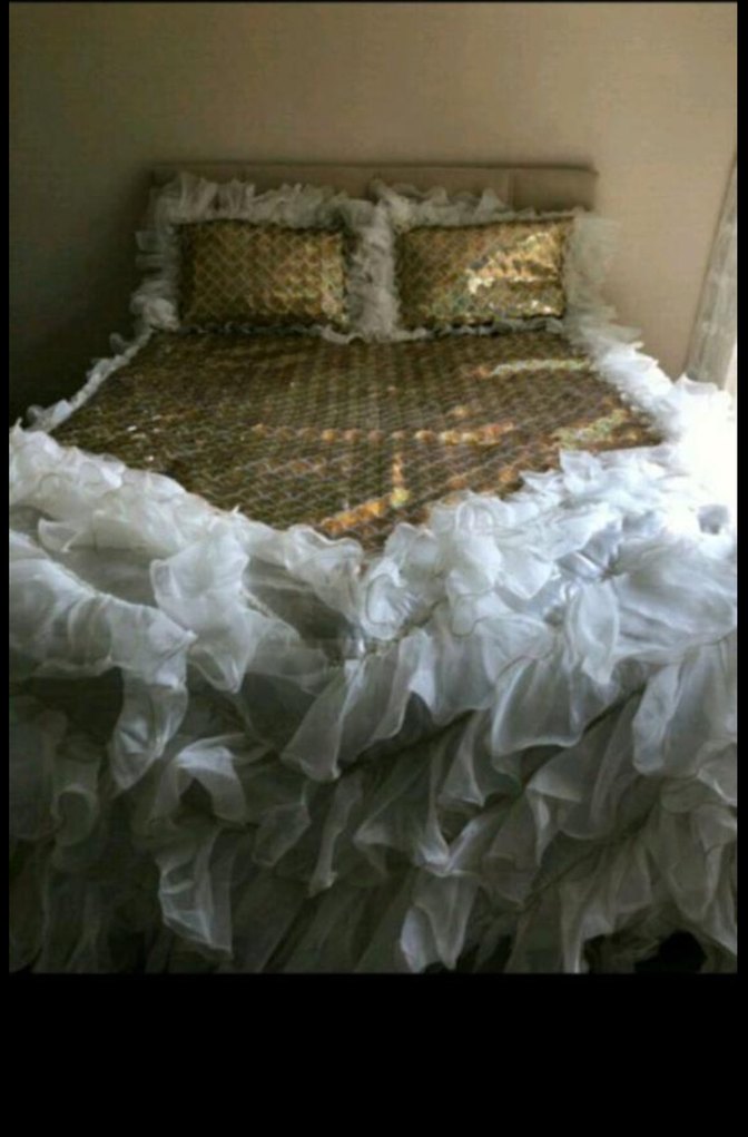 İşlemeli Beyaz Parlak Yatak Örtüsü