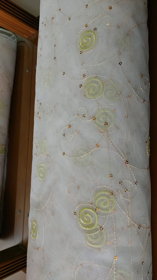 Hafif ve klasik stilde, spiral desenli işlemeli beyaz perde.sifir boyu 2.80 sifir top seklinde