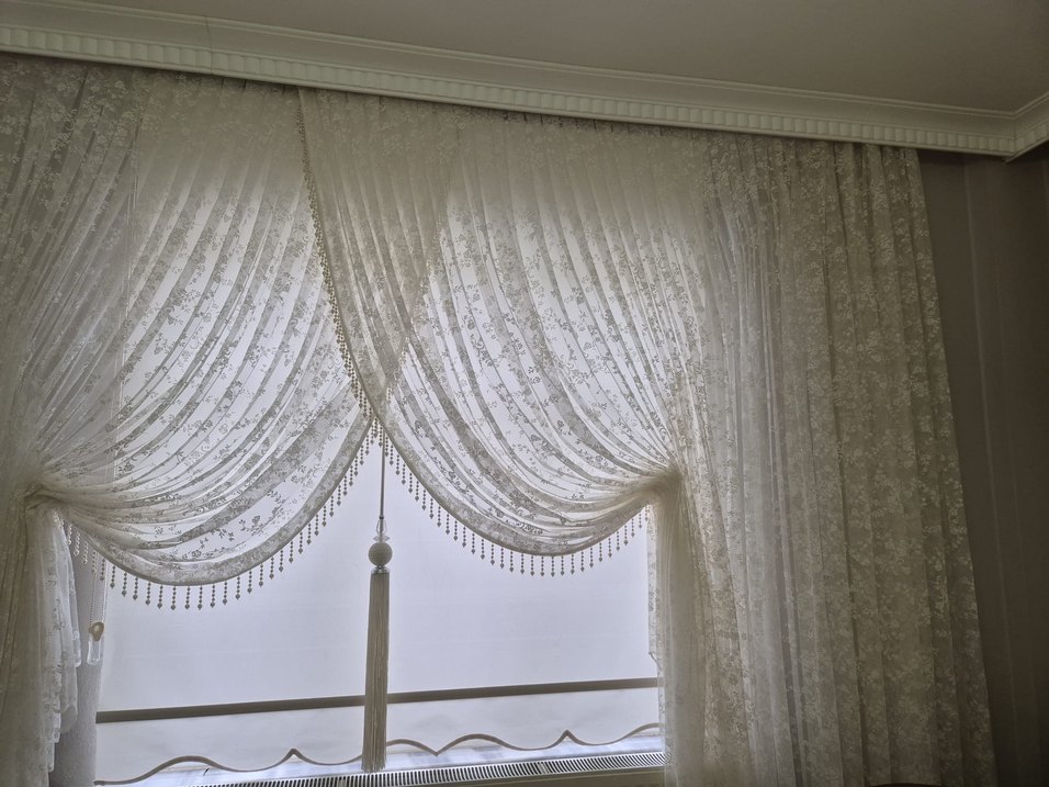 İşlemeli çiçek desenli beyaz perdeler, klasik bir görünüm sunar ve dekoratif püsküller içerir. Yapıştırmalı Boncuk püsküleri vardır isterseniz boncuklarını tercih etmeyedebilirsiniz. İki cam için vardır isterseniz tek cam olarak da alabilirsiniz fiyatı ayrı olarak yarıya bölünecektir.
