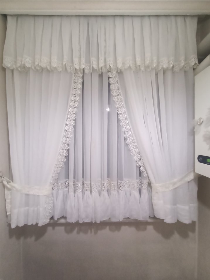 İşlemeli detaylara sahip beyaz perdeler, geleneksel tarzda ve hafif kumaştan. Valans ve bağcıklı klasik görünüm sunar. mağaza ürününden farksız birinci kalite tül kumaşa ve dikime sahip harika bir ürün.EN 1.75 CM BOY 1.75 CM