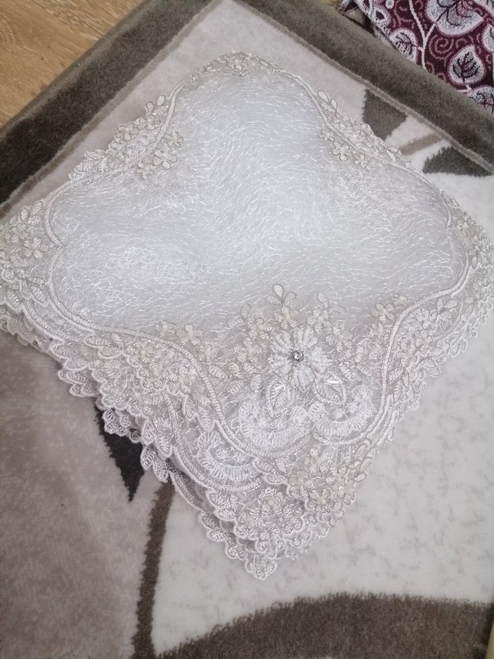 İnce işlemeli çiçek desenleri ve dalgalı kenarları olan beyaz masa örtüsü, klasik tarzda tasarlanmıştır. 12 tane mendil, 2 tane sehba örtüsü, 1 tane ranır, 1 tane masa örtüsü