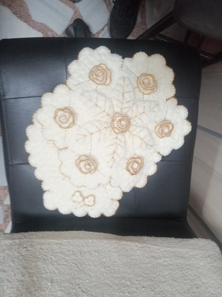 İşlemeli çiçek desenlerine sahip krem banyo lifi yumuşak ve dekoratif bir dokunuş sağlar. ikili takım