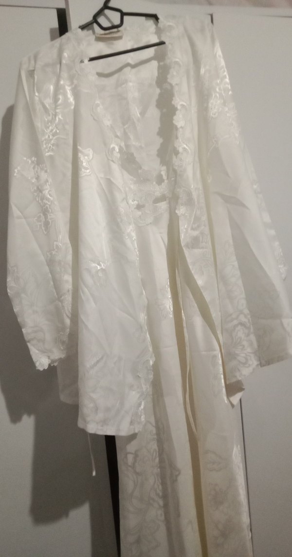 İşlemeli desenlere sahip beyaz uzun sabahlık, ince askılı kollu ve bol kesimdir. Paris tarzını yansıtan hafif ve zarif bir modeldir. ️