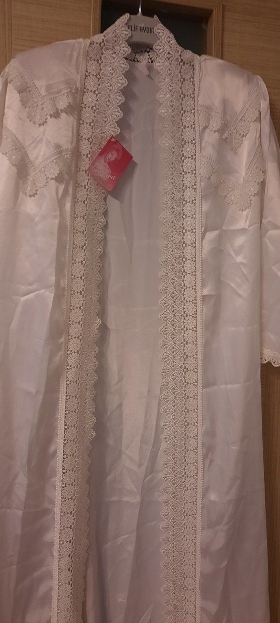 İşlemeli Beyaz Uzun Kadın Sabahlık